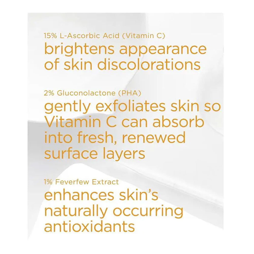 Propanediol, aqua/water/eau, ascorbic acid (pure vitamin c), gluconolactone (pha), chrysanthemum parthenium (feverfew) flower/leaf/stem juice, sodium hydroxide, caprylyl glycol, epigallocatechin gallate